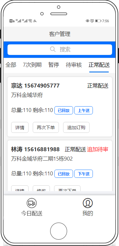 让配送数据、配送单的数据统计更准确,通过数据分析每个配送员的配送情况、续订情况、每个小区情况、小区密度分析、市场分析、单品分析,套餐分析、月度配送统计报表等,更方便的通过数据分析来做真正的数字营销,精准营销!