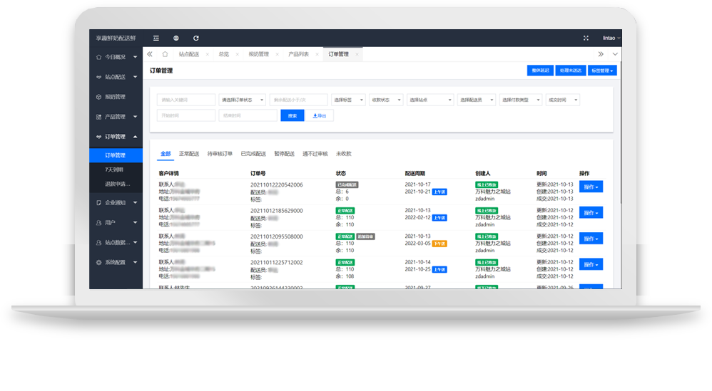 支持企业管理、站长和配送员使用