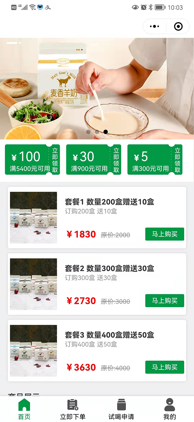 支持订奶用户下单配送使用
