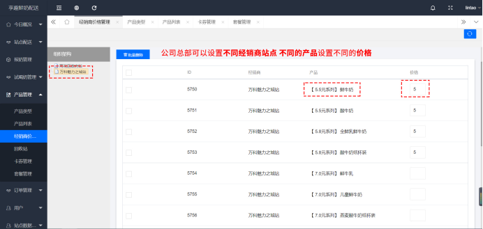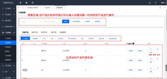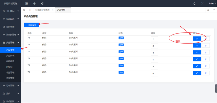 第一步:输入账号和密码(管理员角色)登录奶总管的系统。点击产品管理