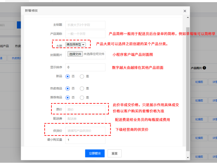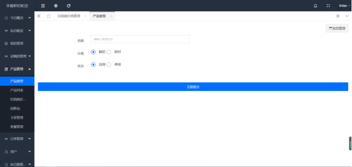 状态:当选择停用之后小程序端以及配送员录单就不会展示这个类型的所有商品