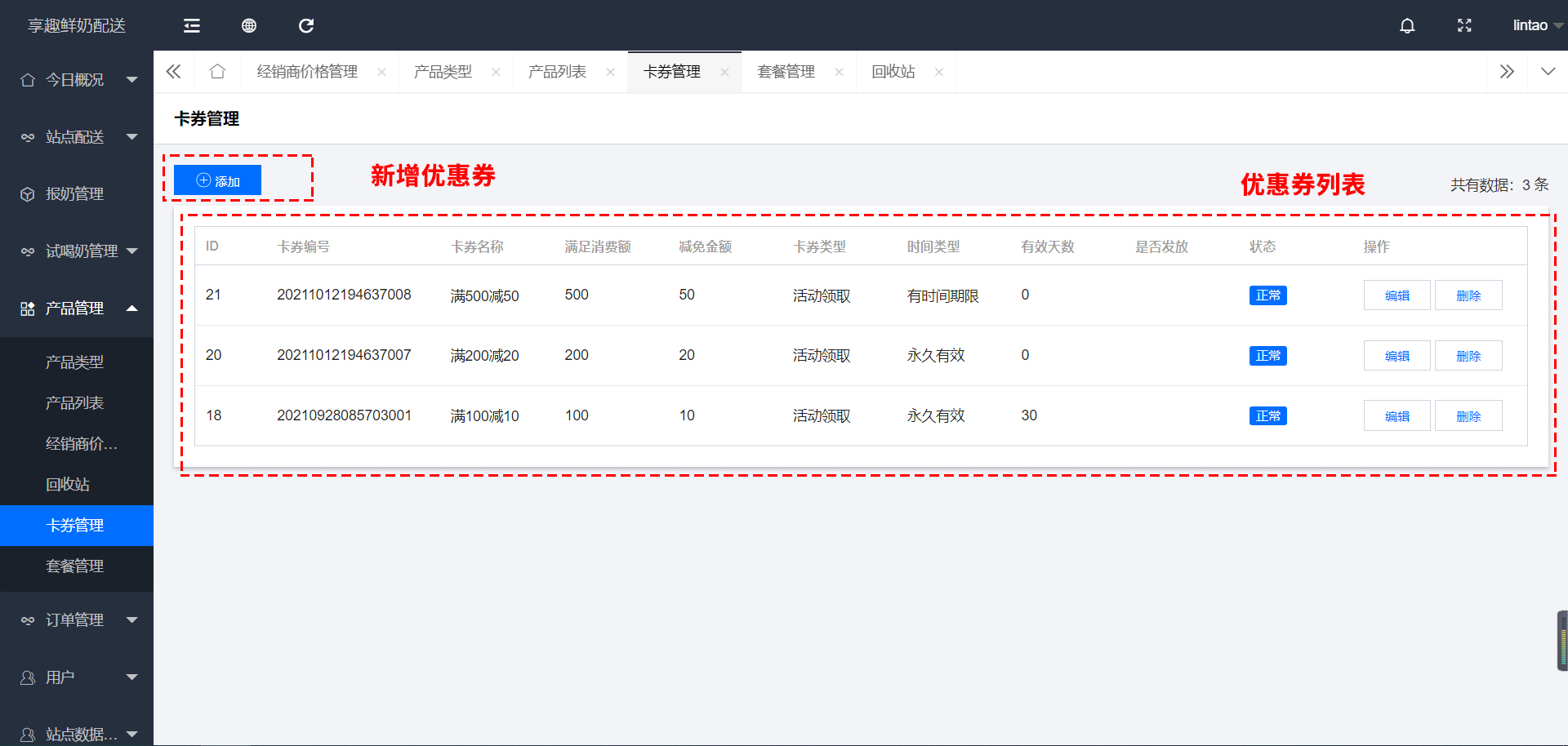 删除优惠券:如果是小程序刚上线没有人使用我们可以直接删除如果有用户领取之后点击删除优惠券用户后台已领取的优惠券也会删除掉,谨慎使用。