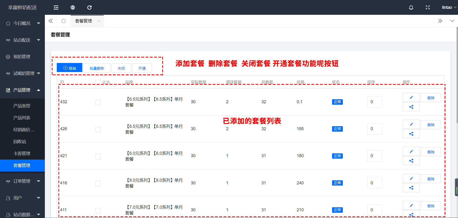 1、点击产品管理的—套餐管理