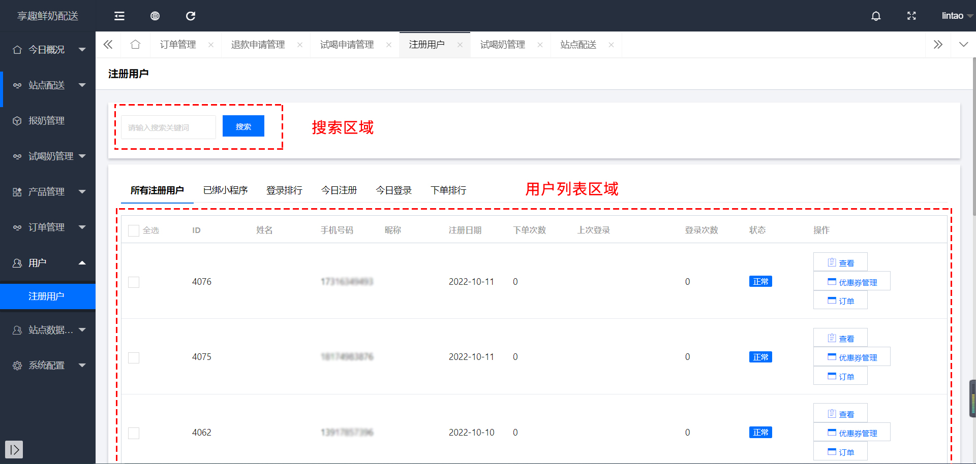 订单管理—试喝奶管理