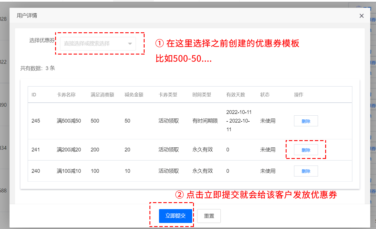 客户管理—优惠券发放 删除