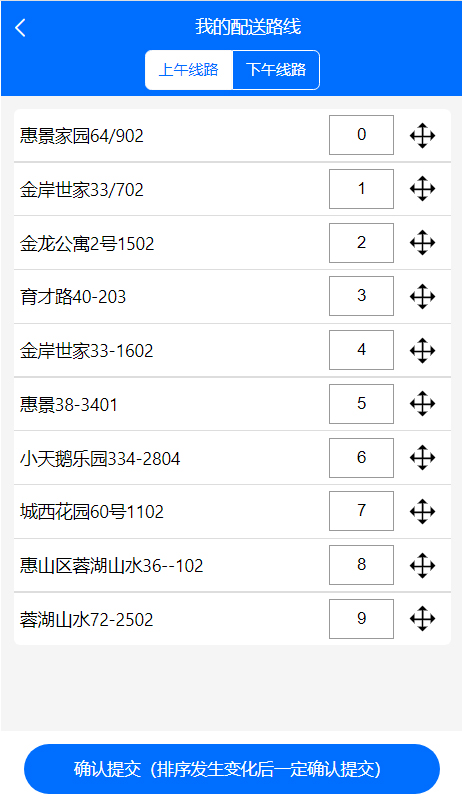 如上图 在数字框里输入数字越小越靠前,或按住拖动图标拖动到想要的位置放开,最后点击确认排序没问题后点击 确认提交