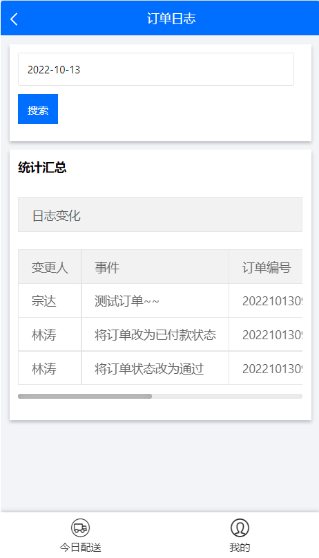 订单日志记录自己名下订单暂停配送、恢复配送,改口味,订单付款状态变化、临时变更口味等操作的记录。