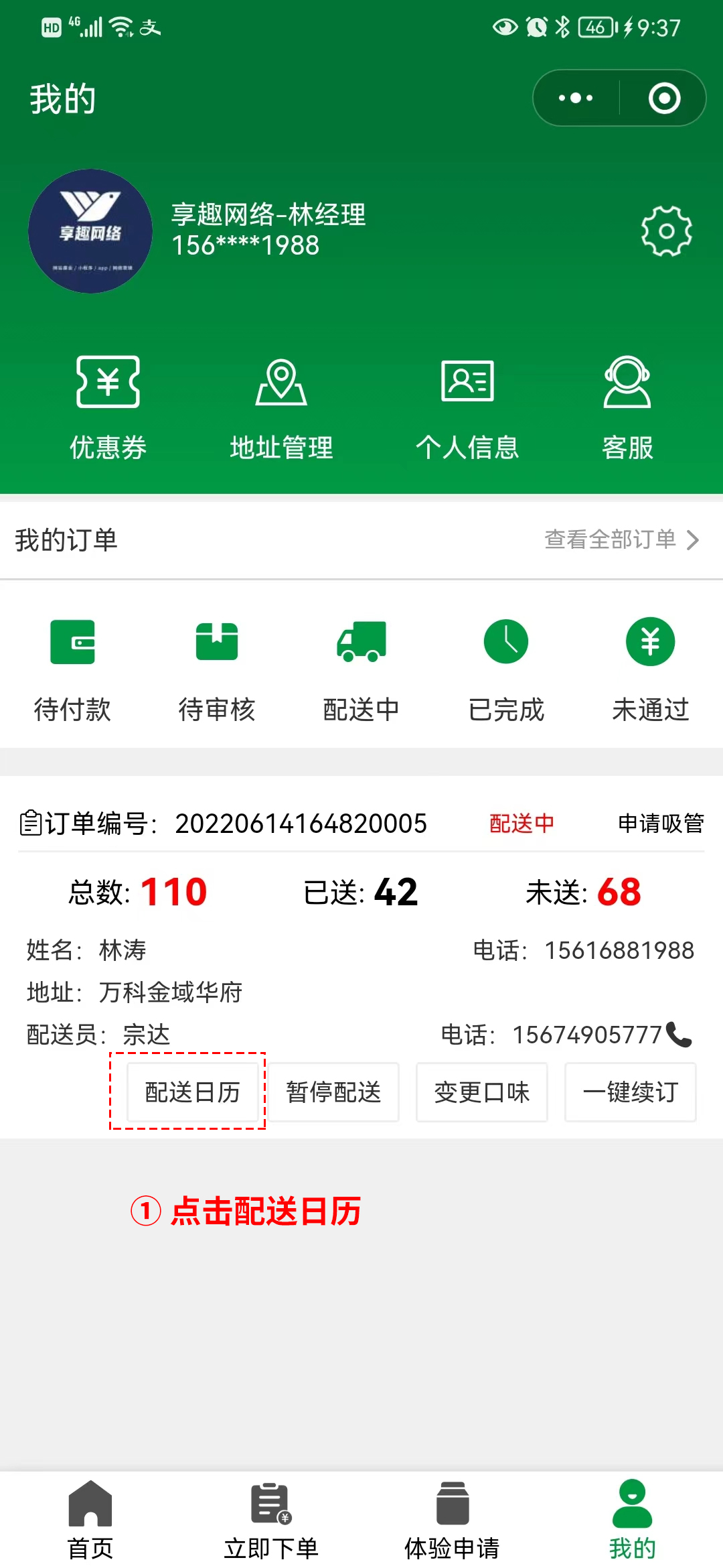 2、找到需要调整的订单点击配送日历